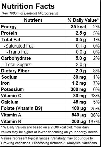Nitrates in beetroot microgreens may help lower blood pressure and improve blood flow. High in potassium, which supports cardiovascular health